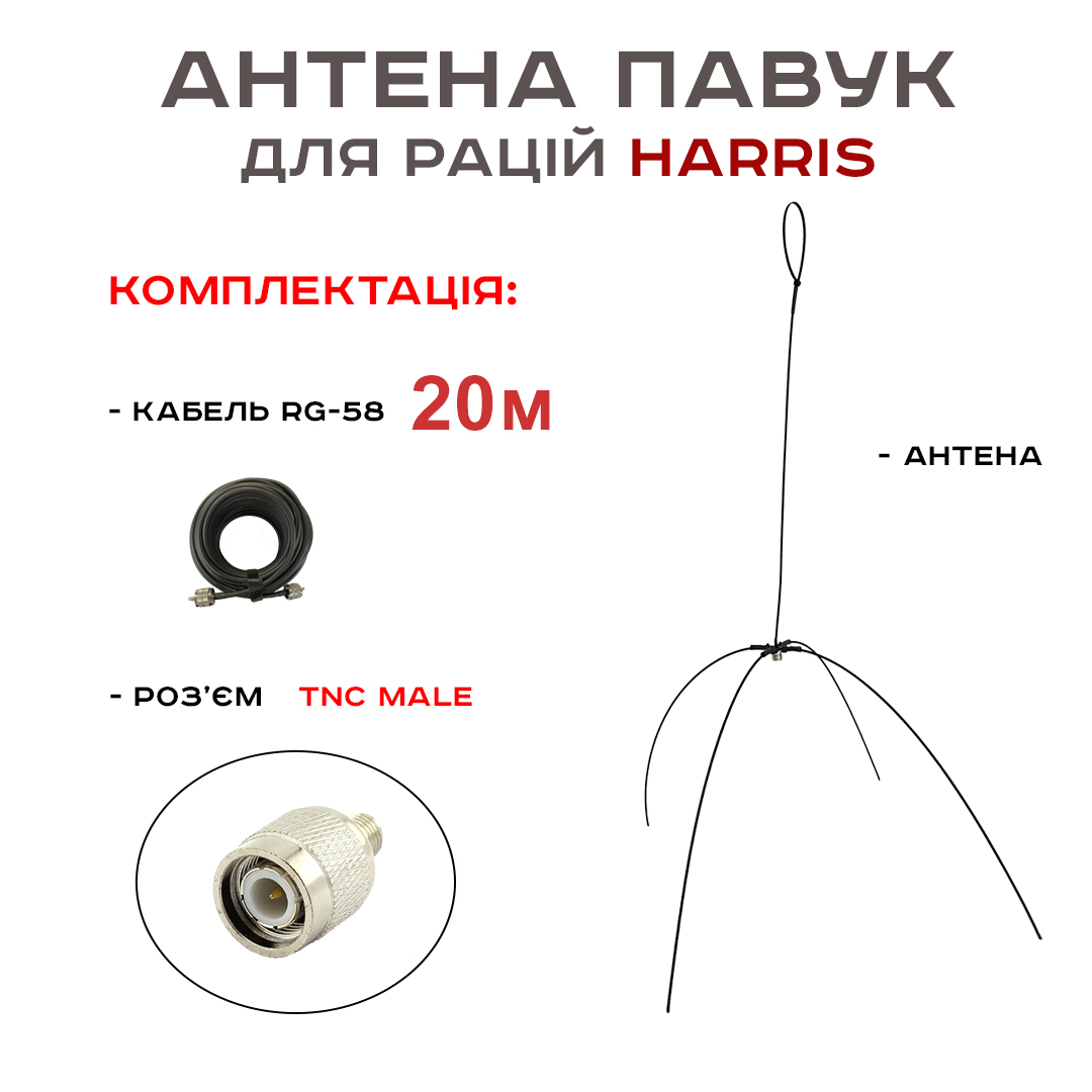 Антена «Павук» VHF/UHF антена для рацій Harris (кабель 20 м.)