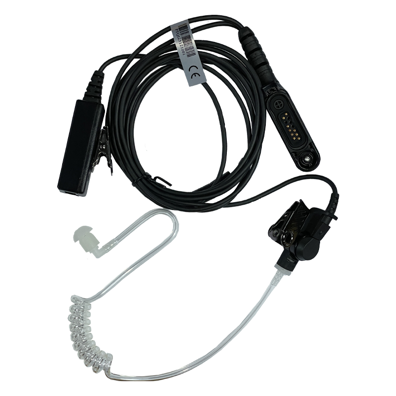 виконана з якісного надійного дроту, з мікрофоном і кнопкою РТТ в цілісному корпусі, а навушник під’єднаний до гарнітури прозорим силіконовим повітроводом.Для надійності та зручності є 2 точки кріплення прищіпками до одягу, 1 – на корпусі мікрофона з кнопкою, 2 – на стику з’єднання гарнітури та повітроводу. Повітровід і навушник виконані з м’якого силікону, що дозволяє користуватися гарнітурою багато годин поспіль і не відчувати дискомфорту.Довжина дроту розрахована таким чином, щоб кнопку РТТ із мікрофоном можна було закріпити на одязі біля підборіддя або вивести через рукав у долоню.