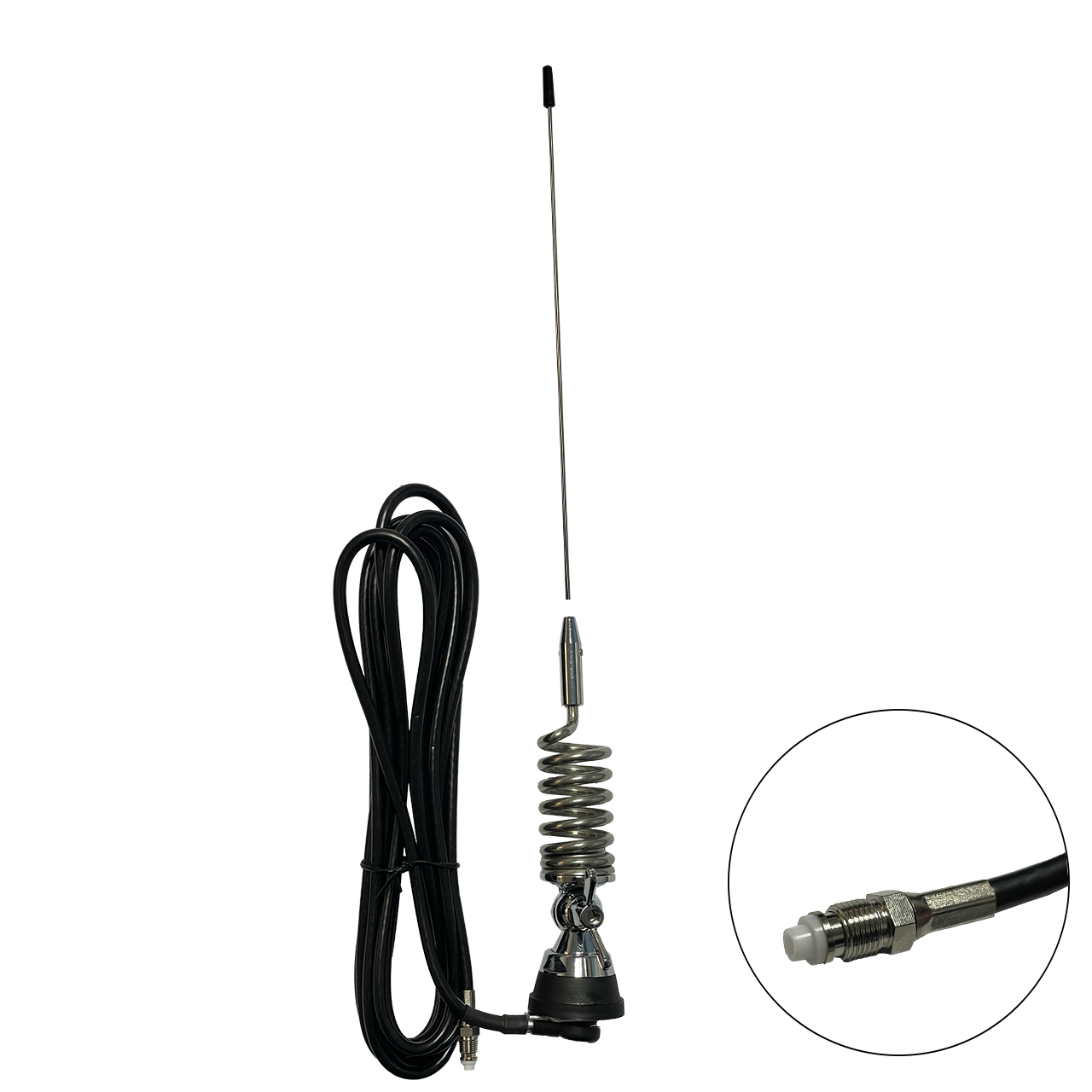 Автомобільна штирова антена з пружиною TQC-A1 з поворотним механізмом та врізним кріпленням,  у комплекте з кабелем RG 58U довжиною 5 метрів і роз’ємом SO235 (повний аналог Sirio SMA 47/135 SL)