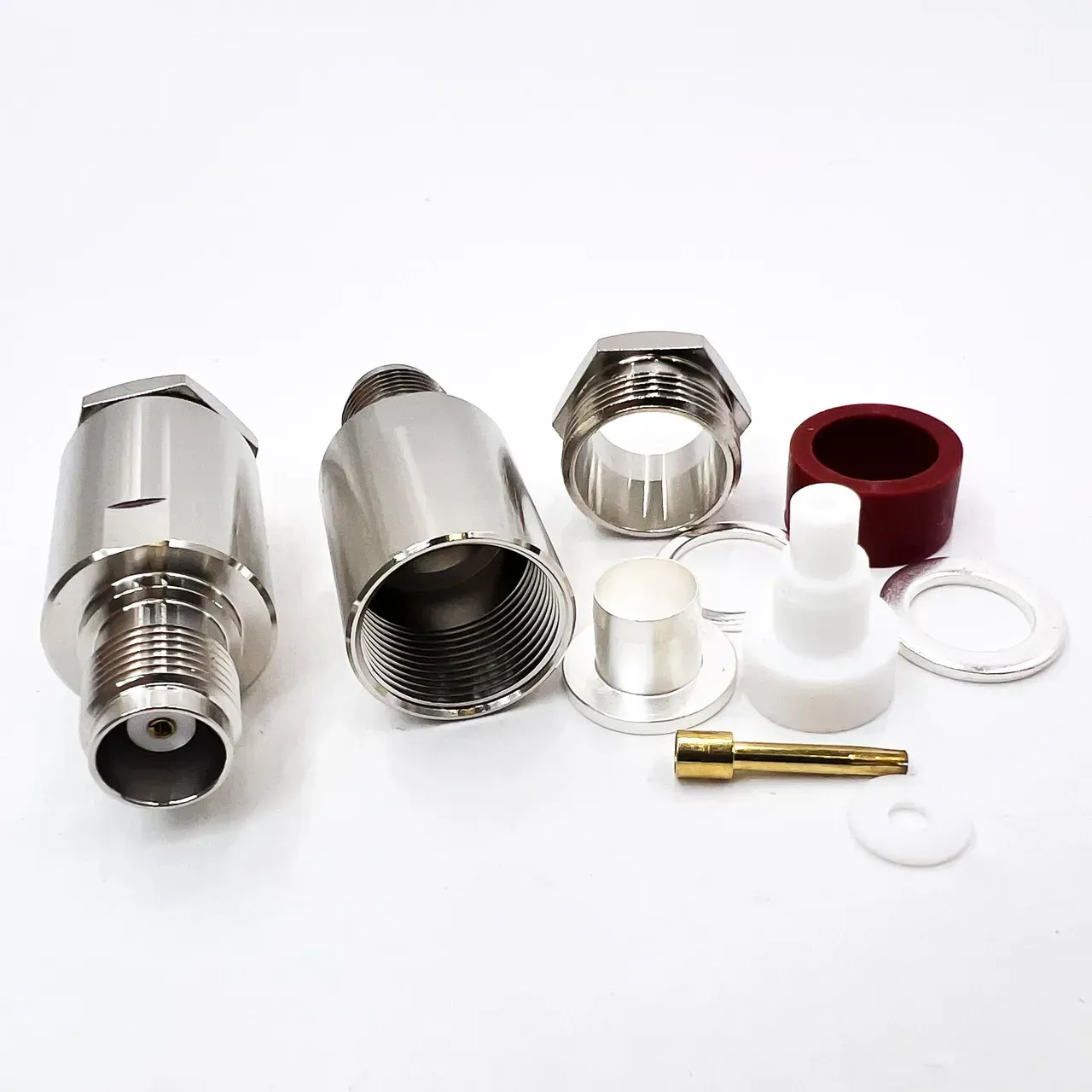 Роз'єм TNC female 9 clamp призначений для надійного з'єднання коаксіальних кабелів у радіочастотних системах. Завдяки затискному механізму він забезпечує стабільний контакт без необхідності пайки, що робить його зручним для швидкого монтажу.